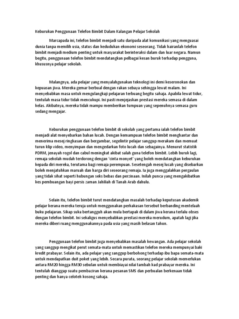 Keburukan Penggunaan Telefon Bimbit Dalam Kalangan Pelajar Sekolah Pdf
